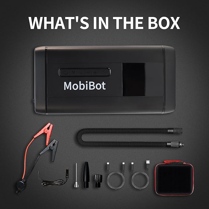 - [What You Get & Warranty] Jump pack (1* jump starter with air compressor, 1* smart jumper cables, 1* air pump hose, 3* gas nozzles, 1* USB-C charging cable, 1*USB C to C charging cable,1* DC cigarette lighter with cable, 1* user manual, 1* portable carrying case. We offer 2-YEAR FREE Warranty, Lifetime Technical Support.