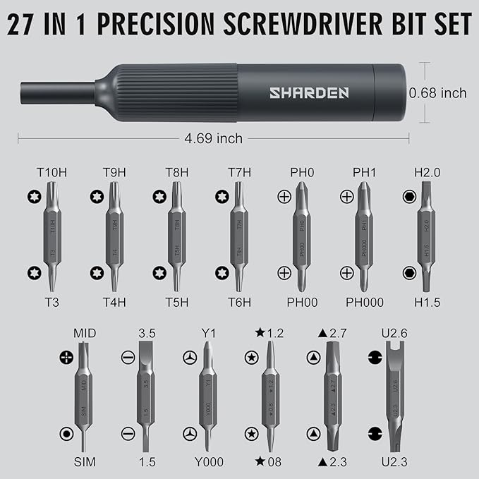 Sharden 27-in-1 Precision Screwdriver Set Multi Bit Small Screwdriver Magnetic Mini Screwdriver Set Pen Style Manual Repair Tool Kit for Eyeglass, Watch, Computer, Jewelers, Laptop, Electronics, Phone