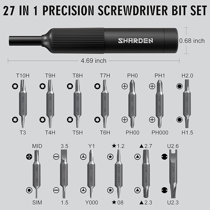 Sharden 27-in-1 Precision Screwdriver Set Multi Bit Small Screwdriver Magnetic Mini Screwdriver Set Pen Style Manual Repair Tool Kit For Eyeglass, Watch, Computer, Jewelers, Laptop, Electronics, Phone