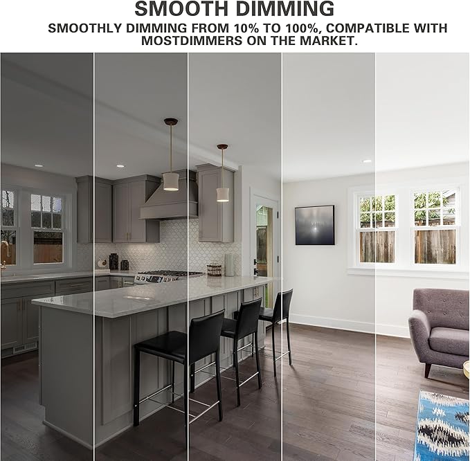 - Energy Efficiency and Cost Savings: Our LED light bulbs provide a significant improvement in energy efficiency compared to traditional incandescent bulbs, using only 9.5W to replace a 60W incandescent bulb equivalent, resulting in an 85% reduction in energy consumption and substantial savings on electricity bills. These bulbs are fully dimmable, allowing you to adjust the brightness from 10% to 100%. This feature enables you to create the perfect ambiance for any occasion .
