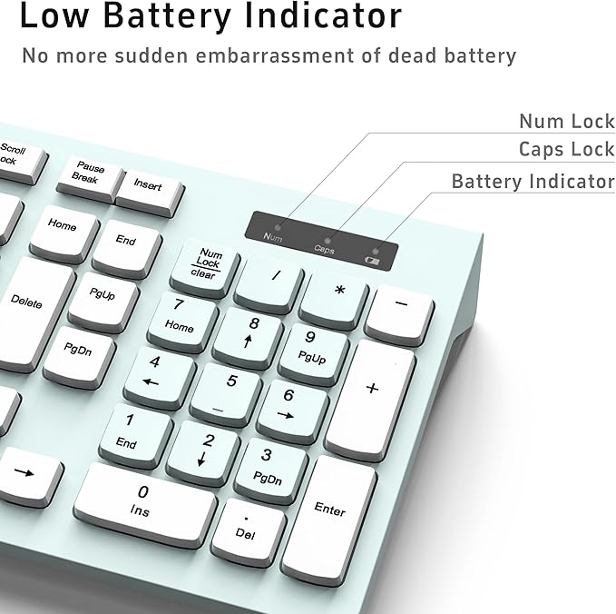- 【Full Size Keyboard】This wireless keyboard and mouse set is a full-size keyboard which can save space more workable.