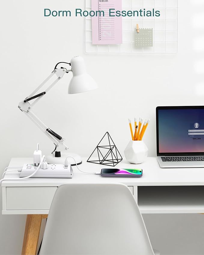 - 【Mountable Power Strips】No need to measure and guess where you had to attach screws, Addtam screw fixation design on both ends allows this white power strip securely installed on the wall or fit on the desk
