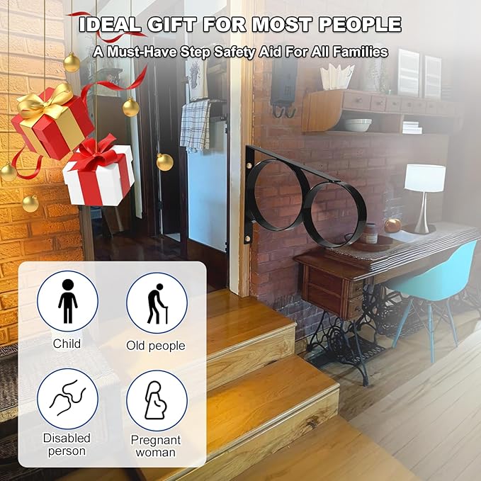 - VARIOUS APPLICATION & ALL FAMILIES-- The outdoor handrails for exterior steps can be used in many places, such as up or down stairs both indoors and outdoors, porch, backyard, doorway, garage, etc. The thoughtful design of outdoor one-step handrail allows your family, such as the elderly, children, pregnant women, and people with mobility problems, to go up and down the steps easily. Ensuring a safe and comfortable environment for your loved ones with reliable performance.