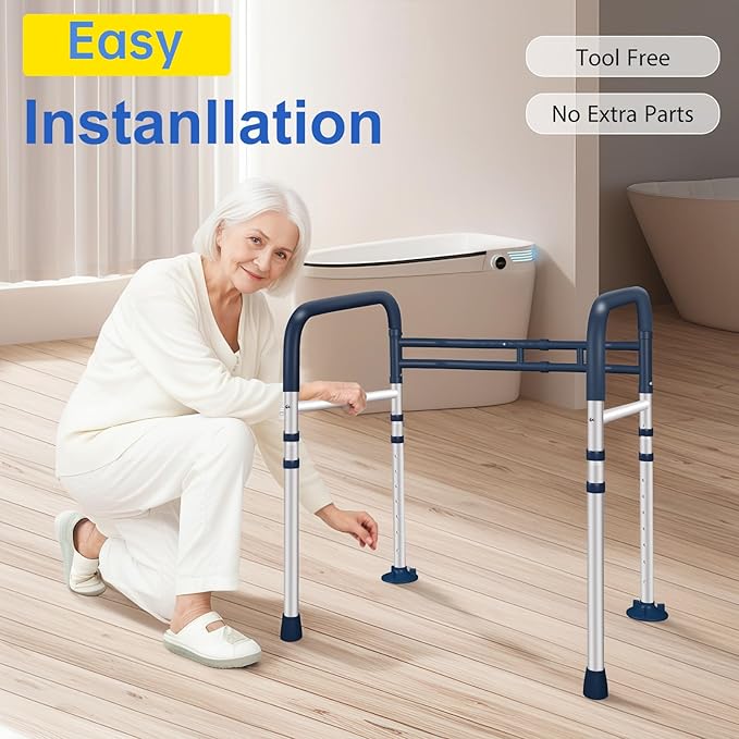 - Quick and Easy Installation: Our toilet support for elderly is designed for effortless setup in under a minute, with no extra parts required. Perfect for seniors, these rails provide a simple yet secure solution to enhance bathroom safety