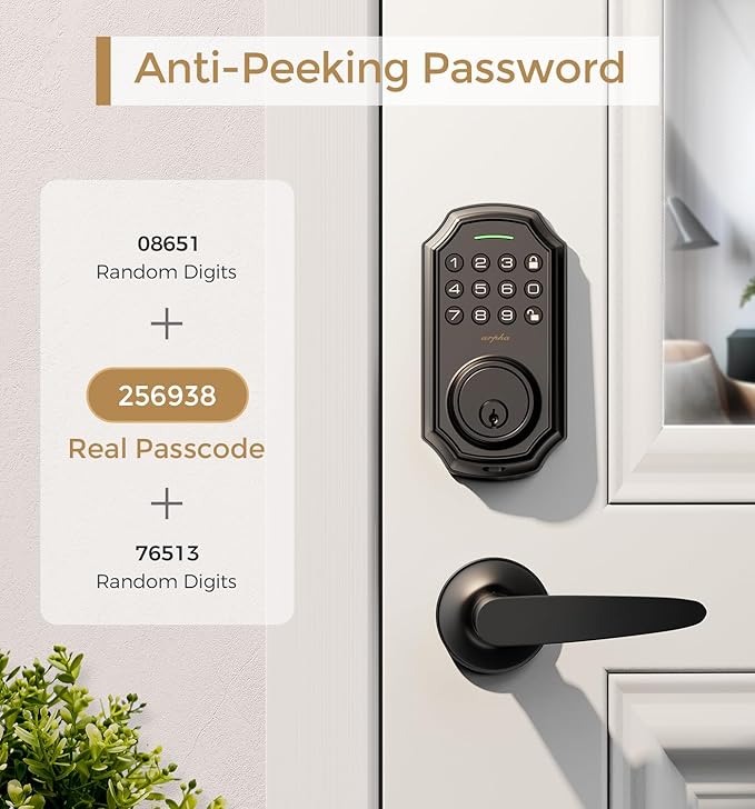 - Special Feature : Anti-Peeping Password, Bluetooth App Control, Keypad Deadbolt with Handle Set, One-Touch Lock