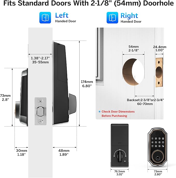 - 【Biometric Door Lock】Your finger is the key! This finger print lock for door has AI self-learning function, biometric fingerprint recognition rate up to 99.99%. The electronic door lock can recognize your fingerprint in as little as 0.3S and unlock your door in 1S. Say goodbye to keys