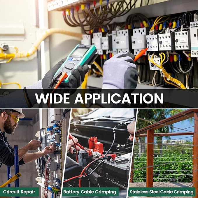 - [Wide Application] This hydraulic crimping tool is great for crimping battery and welding cables, cable lugs, power wires, electrical cables, stainless steel wire rope, etc. Its crimping head can be rotated 180° freely for working in narrow spaces.