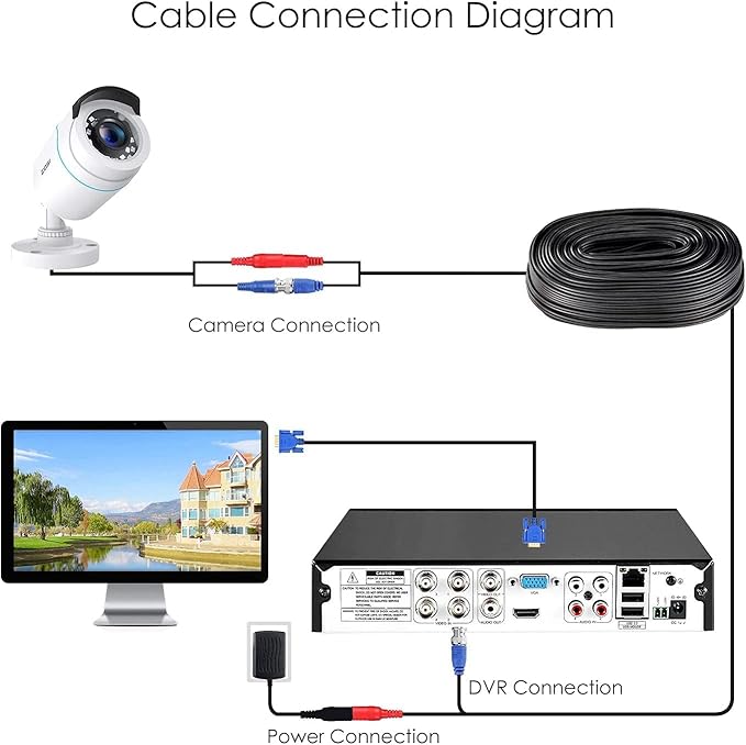 - (4). [ Simple Connection ] __ This TVI cameras kit comes with 4 siamese BNC cable that transmit the power and video signals to the camera, and 1 to 4 power splitter to connect 4 cameras via 1 power adapter. The cable can be run through walls or cells to give you with the flexibility to install the camera where you need it most.on't show 1080p images.