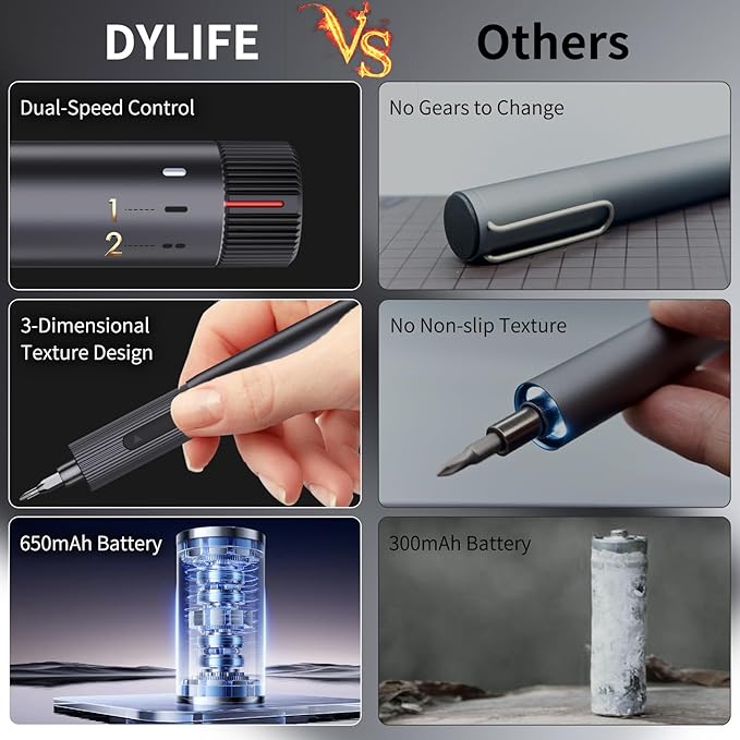 - Powerful Rechargeable Battery:Our mini electric screwdriver comes with a long-lasting 650mAh battery that ensures your project lasts forever, allowing you to tighten up to 350 screws on a full charge with confidence.With the included charging cable, you can say goodbye to the hassle of changing batteries so you can complete your DIY tasks with ease
