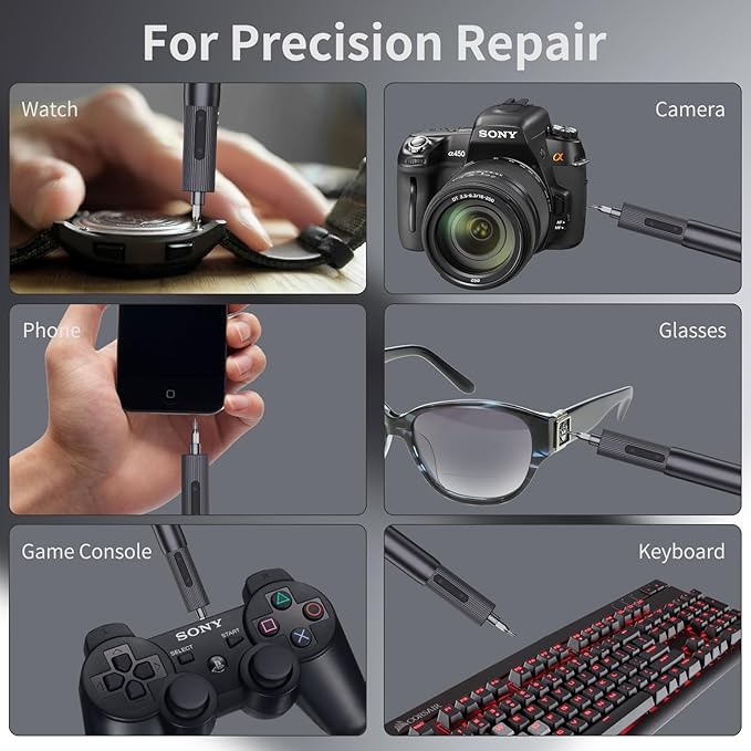 - Portable Electric Precision Screwdriver:This 25 In 1 magnetic small screwdriver set is not designed for high-torque applications where a larger, more powerful tool is called for, but for working with electronic and precision equipment, it’s got more than enough torque.The whole mini electric screwdriver just exudes quality and excellent industrial design