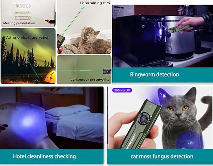 - 【Higher UV Intensity】 High-power output of up to 1300mW at a 365nm wavelength, Ultraviolet Flashlights for Pet Dog Urine, Stains Detection/Resin Curing/Fluorescent Agent,offering a purer and more professional UV light experience compared to standard 395nm UV lights