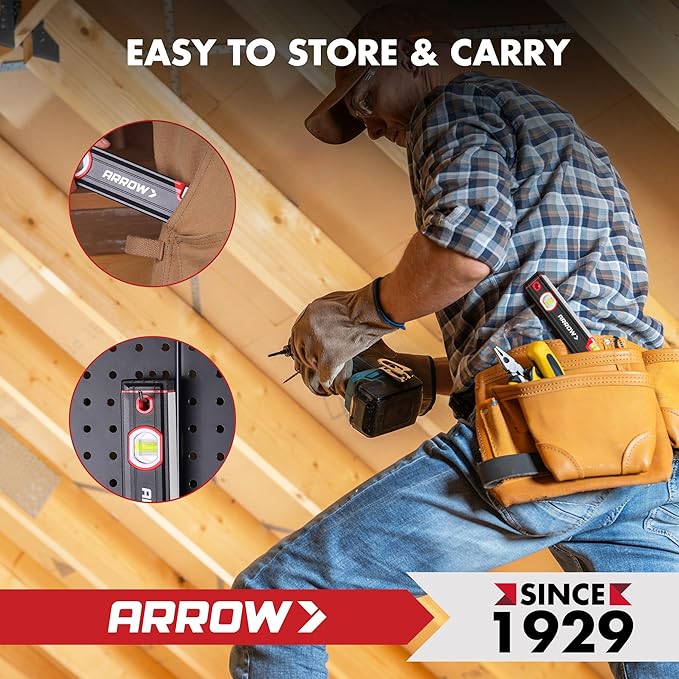 ARROW 16-Inch Level, Magnetic Torpedo Level with 45°/90°/180° Bubbles, Aluminum Alloy Body, Precision-Machined Base, Shockproof Rubber End Caps, V-Groove & Hanging Hole for Construction, Carpentry