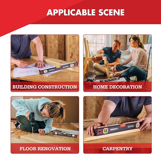 - Versatile Applications: This 16" torpedo level combines precision, powerful magnets, impact resistance, rugged durability, and portability into one tool, making it ideal for professional and DIY projects including: construction (door/window installation, light fixture leveling), woodworking (cabinet assembly, flooring installation, furniture crafting), metalwork (pipe welding), outdoor (fence installation, landscape gardening) and countless professional, DIY projects and household use