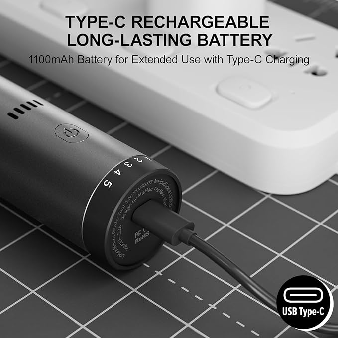 - 【Long Battery Life and Quick Charging】: Equipped with dual 1100mAh lithium batteries, the cordless rotary tool supports up to 2 hours of continuous use. The USB-C fast charger ensures rapid and convenient recharging.