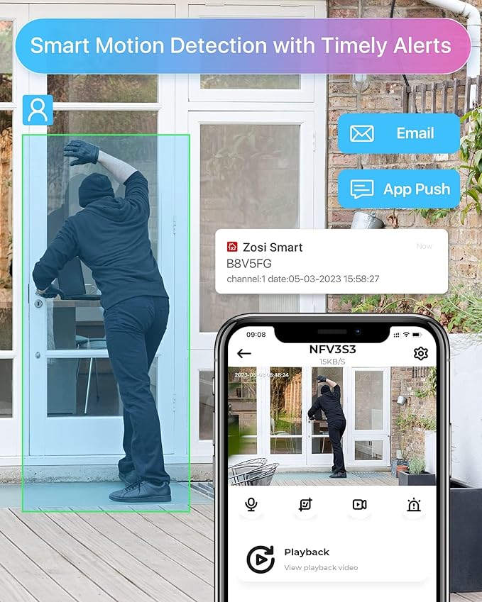 - (4). [ Local or Remote Access, Playback Anytime & Anywhere ] __ You can conveniently view and control your security system locally by connecting it to a monitor without internet, or remotely via the free ZOSI Client software on tablets, PCs, or the ZOSI Smart mobile app on smartphones. The system allows you to easily search and playback recorded footage from different days, hours, or minutes, making it simple to find significant evidence or entertaining videos.