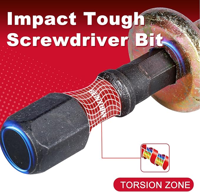 - Impact Screwdriver Bits: Impact Shock Absorbent Zone stands up to impact drivers. It can be handled a new generation of higher torque impact drivers