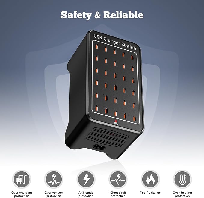 - Multi-Device Charging: Equipped with 30 USB C Charger ports(type c charger), this usb c charging station allows you to conveniently charge up to 30 devices simultaneously.