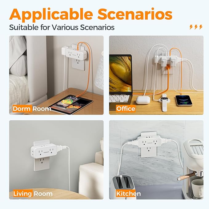 - Space Saving: TESSAN USB plug adapter for wall outlet has a compact size and won't block the use of below sockets when plugged in; Electrical outlet extender can fits in tight spaces, keeping your desktop clean and home comfortable