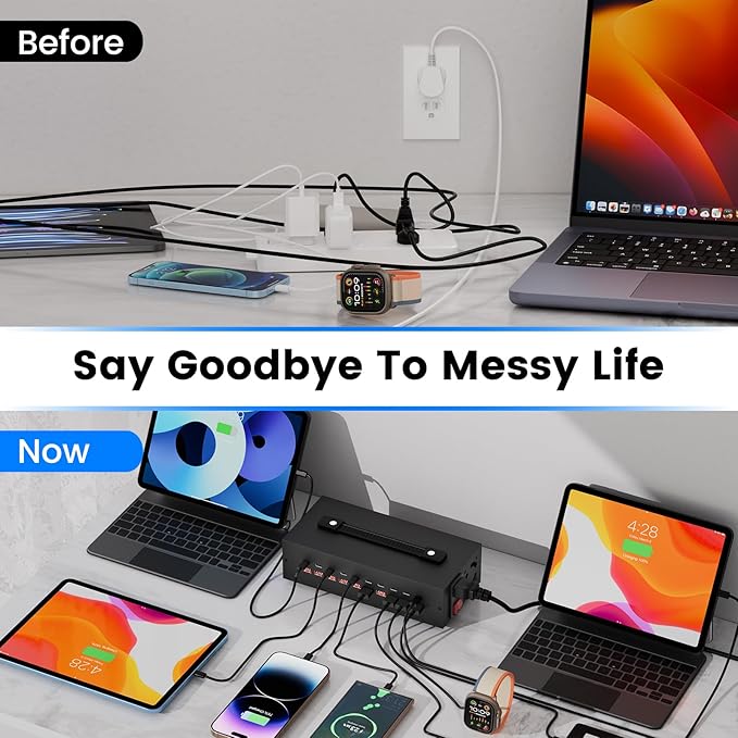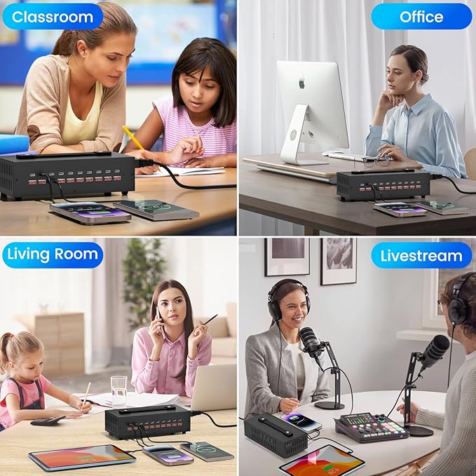 - COMPATIBLE WITH 99% OF SMART DEVICES - Say goodbye to single port chargers. The usb power strip set is suitable for apple devices, sumsang galaxy, headphones, smartphone, wireless mouse, usb fan, kindle, speakers, etc. It has a wide range of applications and is very suitable for schools, offices, homes, travel and live broadcasting industries.