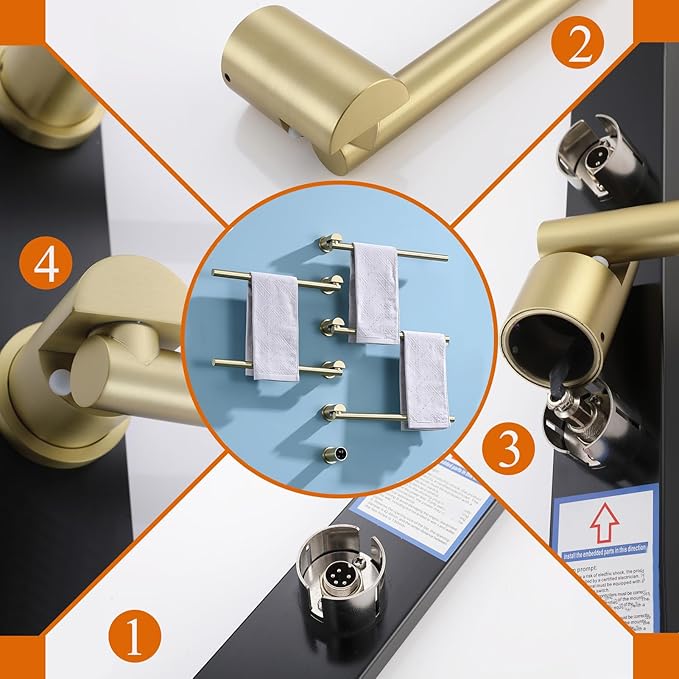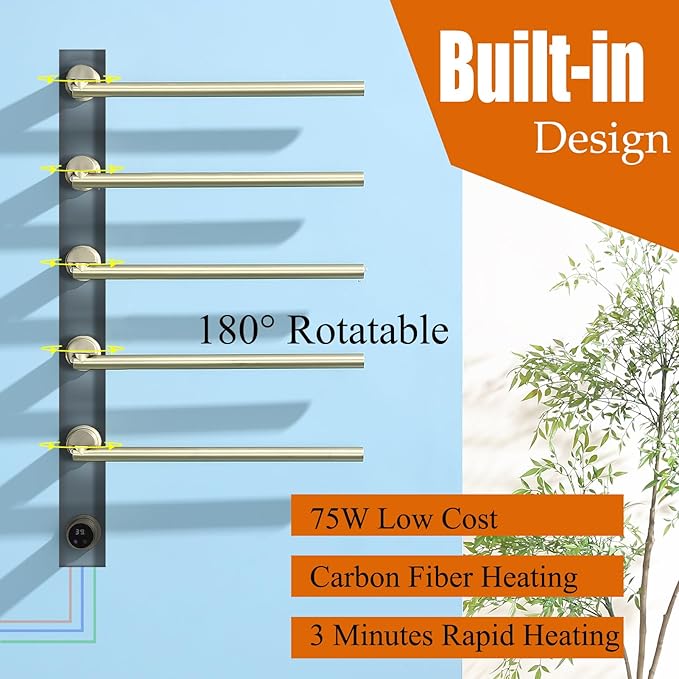 - [180° Rotating Design] Thanks to the 5 arm that can be rotated 180°, your towels will benefit from optimal air circulation, promoting fast and efficient drying. Compared to traditional wall-mounted electric towel radiators, our rotatable towel warmer concealed offers advantages such as space saving, improved organization, aesthetics, making it a practical and stylish addition to any bathroom.