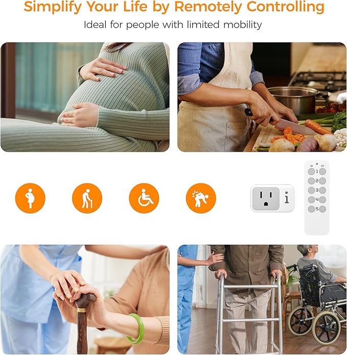 - Convenient to Use: 2 pre-programmed remotes control 5 remote light switch outlets, simply plug and play; Easily control hard-to-reach household appliances next to sofa and bedstand; Ideal for the elderly, pregnant women and those with limited mobility
