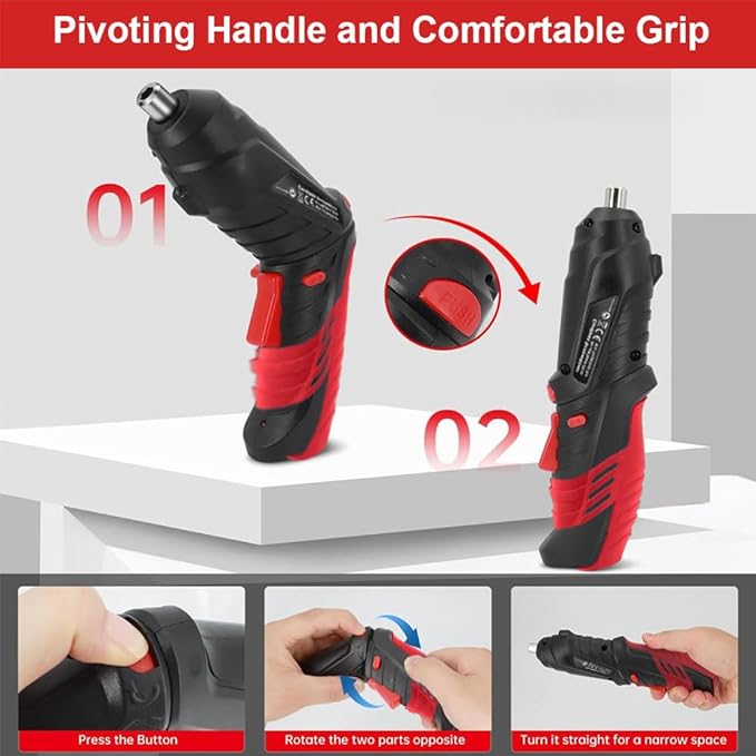 - -The AFNZTME Cordless Electric Screwdriver is featured by adjustable dual position handle for operation in either in-line or pistol-grip.