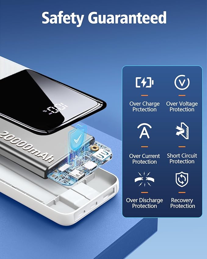 - We Care About the Safety >>>: The USB C portable charger uses multiple intelligent protection systems, including over-charge, over-discharge, short circuit, over-current and temperature control to protect the safety of every charge. Also, the integrated cables with grooves are convenient for storage without the hassle of cluttered wires, more than 10,000 bending tests prove its durability, tear-resistant, bend-resistant. We offer you the best products with the best quality and the most professional technology.