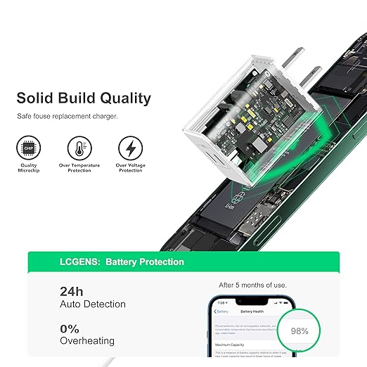 - Safe and Reliable: The high-speed charger has a built-in smart chip that can adjust the input power of the device to prevent the phone from overcharging, overcurrent, overheating, protect the device, and reduce safety hazards.
