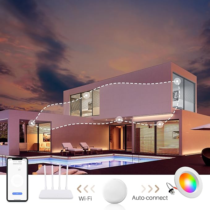 - APP Remotely Control - Download Smart Life APP for connecting these 4 inch recessed lighting and work with hub(come in package), then you can control lights even you’re away home.