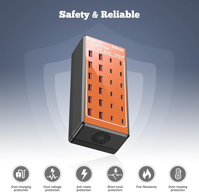 - ✅Organized Charging: With 24 individual USB ports, this charger helps declutter and neatly organize multiple devices while charging.