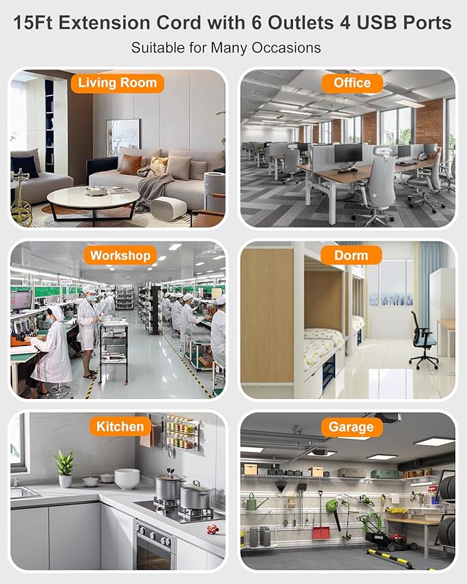 - Special Feature : 4 USB (2 USB C), 6 AC Outlets, Mountable, On And Off Switch, Surge Protection