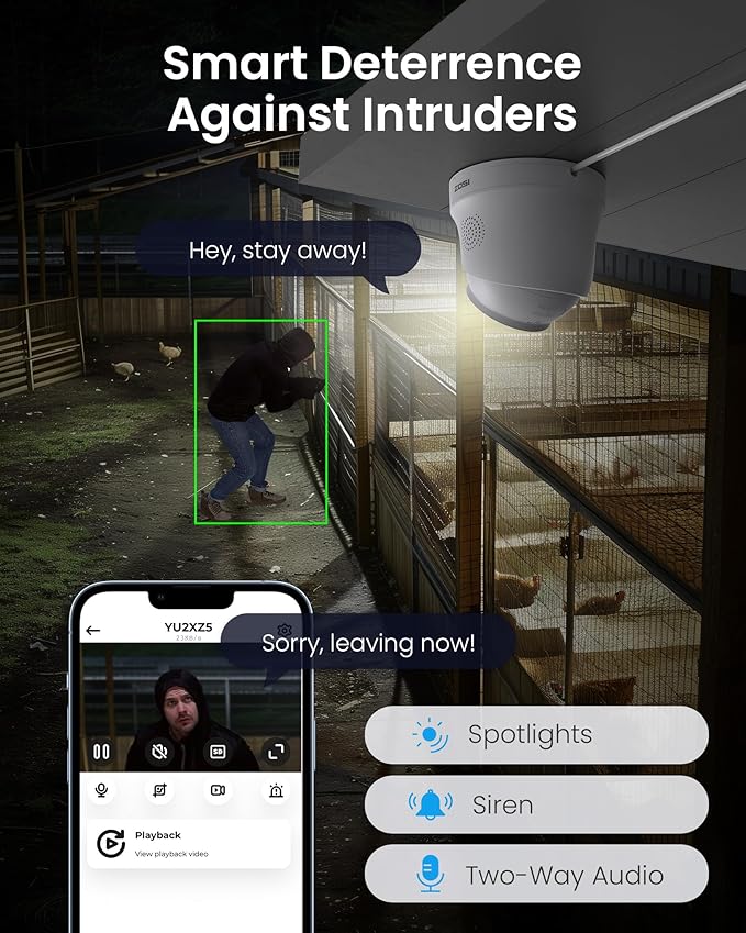 - [Face/Person/Vehicle Detection with Push Alerts] Our AI-powered detection feature intelligently identifies faces, people, vehicles, or other objects, reducing unnecessary notifications. Whenever a motion event is detected, you'll receive instant push alerts through the app and email notifications. Stay on top of any activity with our advanced detection technology.