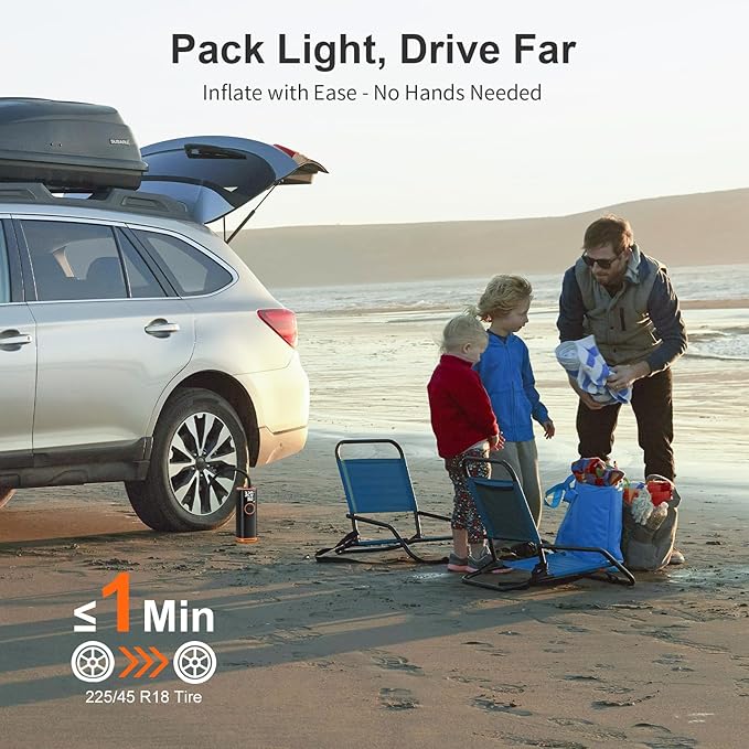 - Super-Fast Inflation! Our electric air pump with a high-powered motor can reach a max pressure of 160 PSI. It can quickly and efficiently inflate car tires, bike tires, swimming rings, and sports balls. No more waiting - just turn it on and it's done in a flash