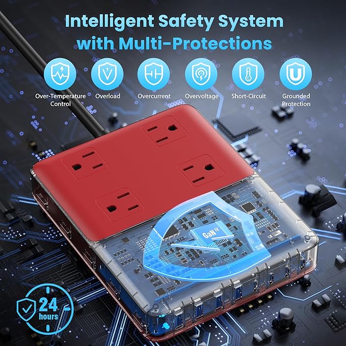 12-in-1 Charging Station USB C Power Strip with 5ft Cord,105W GaN IV USB C Charger Block,4 AC Outlets,4 USB-A,4 USB-C for MacBook,iPhone 16/15/14,Fast Charging Desktop Charger for Office (A-Red)
