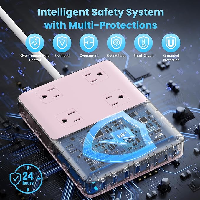 12-in-1 Charging Station USB C Power Strip with 5ft Cord,200W GaN IV USB C Charger Block,4 AC Outlets,4 USB-A,4 USB-C for MacBook,iPhone 16/15/14,Fast Charging Desktop Charger for Office (Pink)