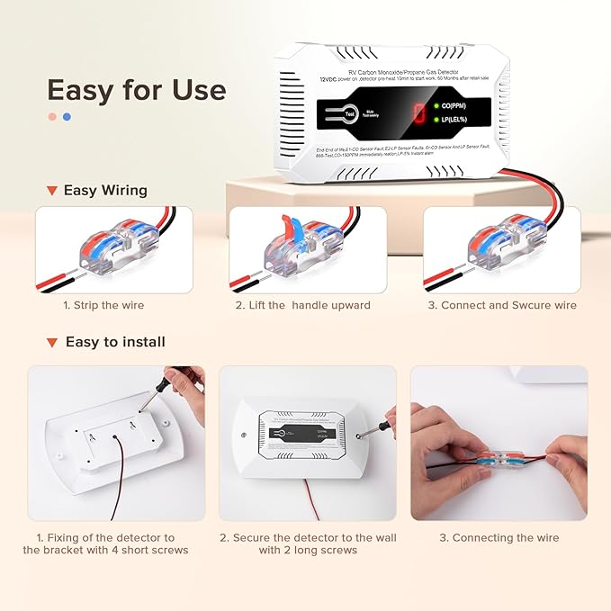 - 2 in 1 RV CO & Propane Gas Detectors: 2-in-1 design with independent detection probes that detect both gases simultaneously. With Nuleto 2-in-1 alarm system, you'll receive early warnings that give you ample time to take precautionary measures and prevent any dangers, ensuring the safety of your and your family lives and property, allowing you to fully enjoy your travels.