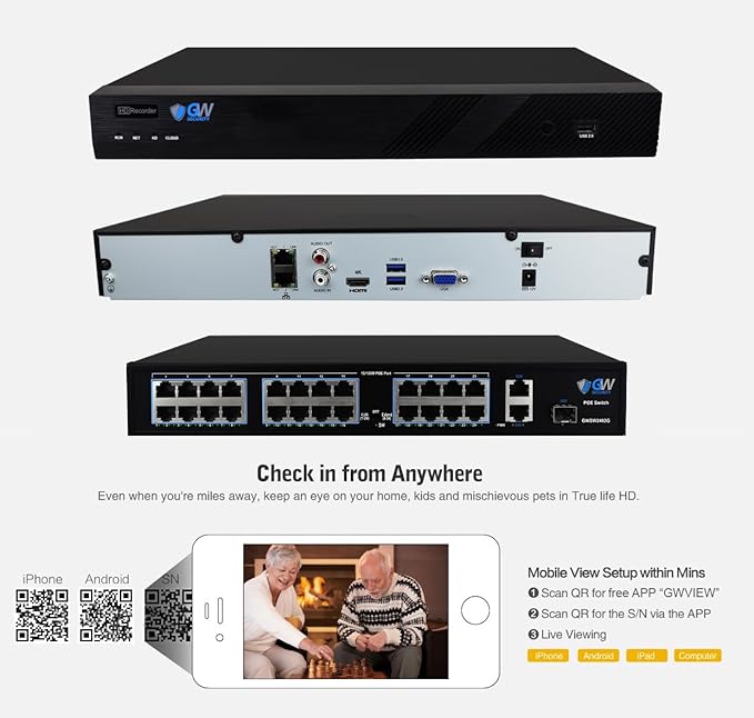 - View and Record in Widescreen with Remote Viewing on Computers, Phones and Tablet devices. Setting up is so easy! Simply download the smartphone App and scan the NVR QR code