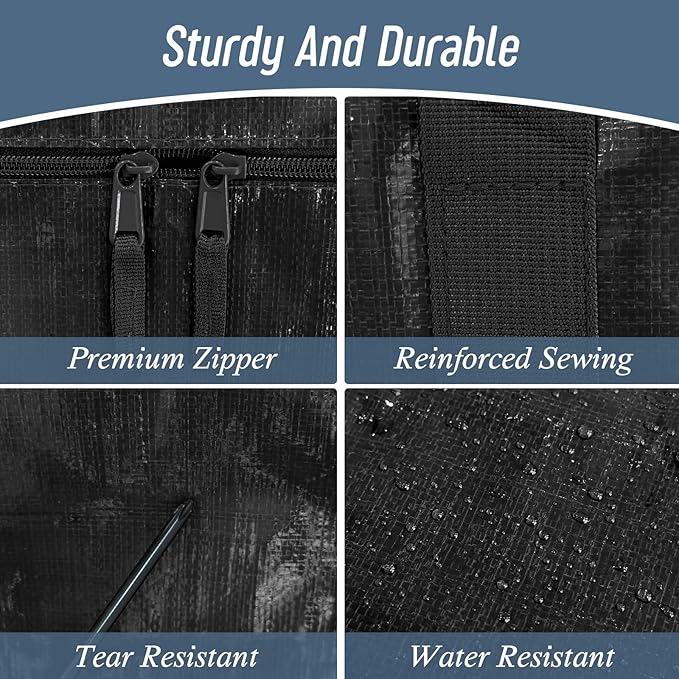 6 Pack Extra Heavy Duty Large Moving Bags with Strong Zipper & Comfortable Handles, Sturdy & Durable Clothes Storage Bags Totes Bins, Packing Moving Boxes for College Supplies, Black