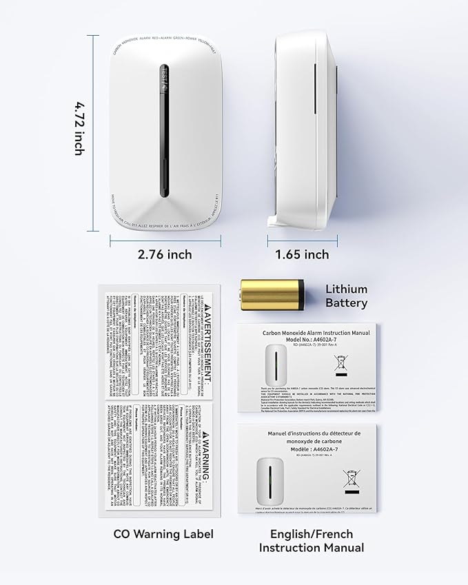 - PORTABILITY: The travel carbon monoxide detector is compact and easy to carry, product size: 4.72*2.76*1.65inch. It can be easily put into a suitcase, backpack or handbag to carry around.