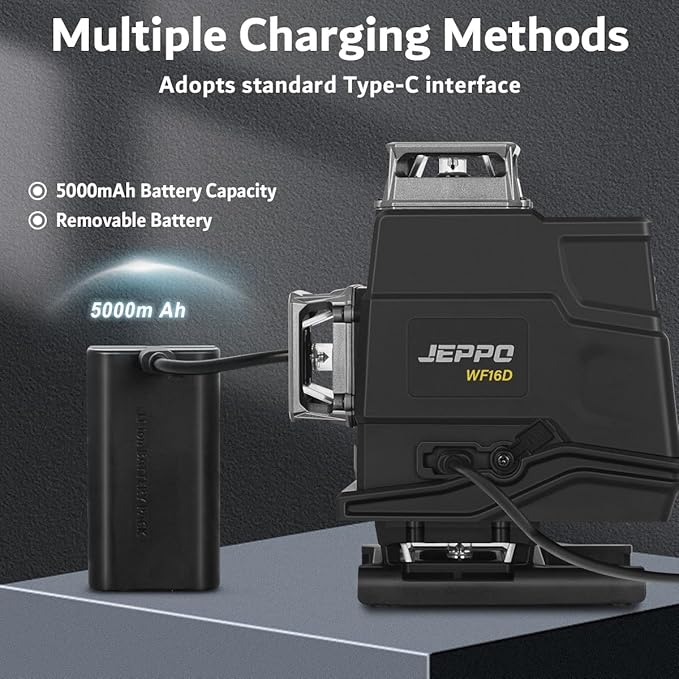 - APP Remote Control and Type-C Charging: By scanning the relevant code with your phone to download the APP, you can directly control the laser device remotely from your phone, making your work faster and more convenient. The newly upgraded Type-C charging is 60% faster than regular USB charging, and the 5000mAh removable lithium battery allows for extended working time