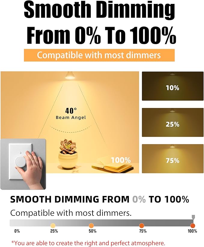 - SMOOTH DIMMING: Lumiverse dimmable LED bulbs are silent and meet your various lighting needs without annoying flicker. You can dim it completely smoothly from 0%-100%, clearer than traditional halogen bulbs. Bulb is compatible with most electronic LED dimmer switches.
