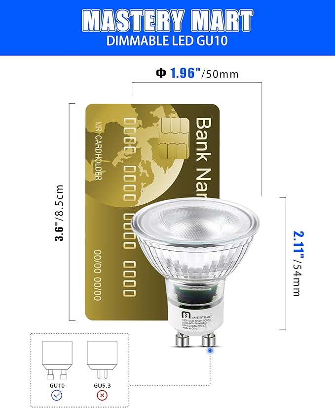 - 【Energy-saving GU10 Light Bulb LED】: Replace your 50W halogen bulbs with MASTERY MART 4.5W GU10 Bulbs 400lm, saving up to 85% on electricity bills while maintaining brilliant illumination. eco-friendly and cost-effective solution for your lighting needs.