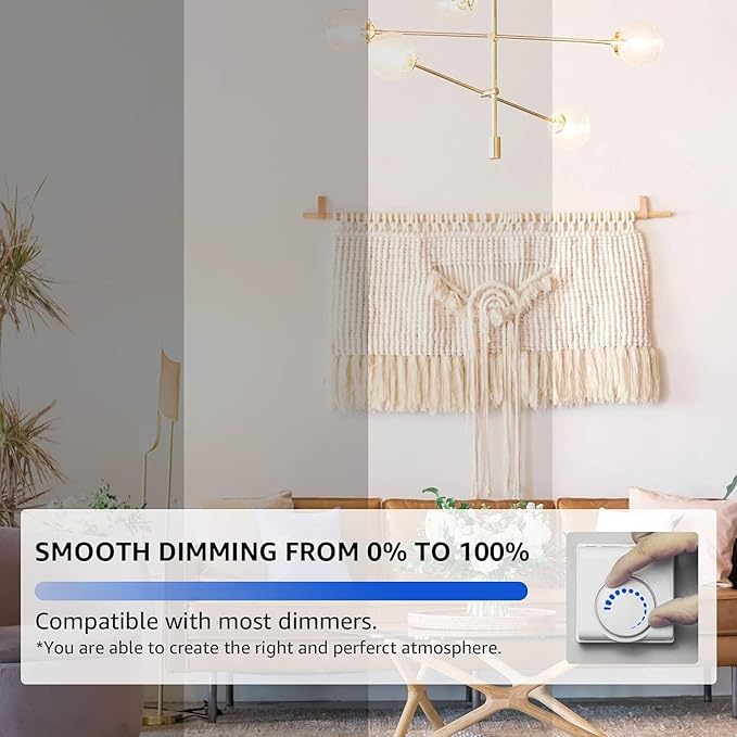 - 💡【Smooth Dimming & Flicker-Free】Compatible with most LED dimmers, Mastery Mart LED bulbs can be dimmed from 10% to 100% with no buzzing or flickering. Relax under the stable lights and browse, read, or work efficiently for longer periods without interruptions.