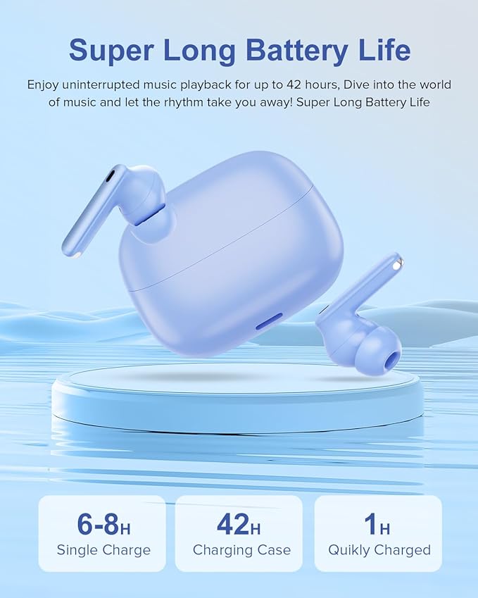 Wireless Earbuds, 42H Playtime Bluetooth 5.3 Headphones, HiFi Stereo Call Noise Cancelling Earbuds, IPX7 Waterproof Stereo in-Ear Earphones with LED Display for iOS Android (Sky Blue)