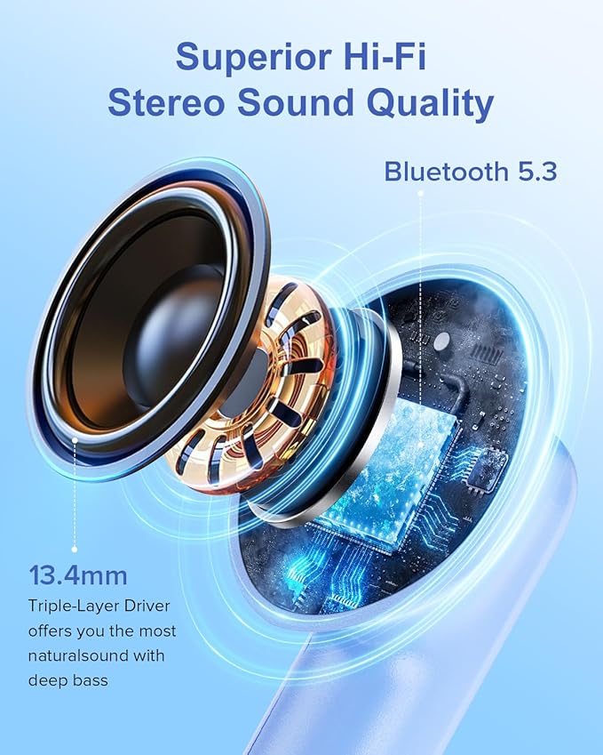 - 【Fast and Stable Connection】: Our wireless bluetooth headphones are equipped with superior Bluetooth 5.3 technology, providing fast and stable transmission speed with low latency. You can connect this bluetooth ear buds within 15 meters without interruption, providing a seamless listening experience.