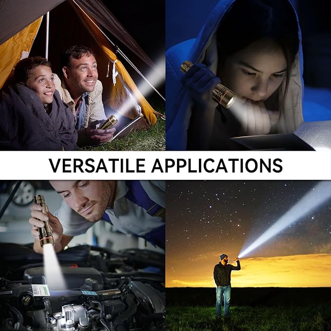 - Tactical Compact Flashlights: These small flashlights with 4.7’’ height and 106g, lightweight enough to carry comfortably and easily fit in your pocket, backpack, purse or car console compartment, ensuring convenient storage and quick access. Keep at home for emergency backup or to use outside, such as dog walking, camping, hiking, fishing, etc