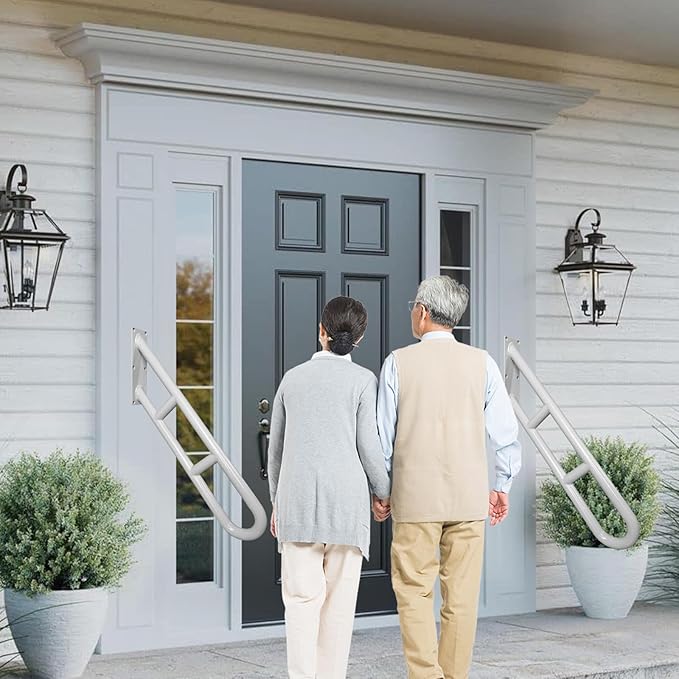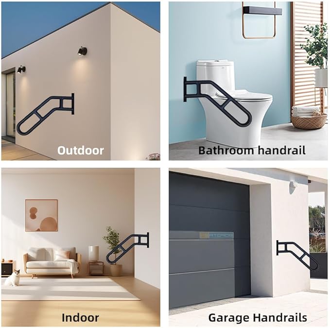 - Safe and Sturdy:This handrail is very perfect for 1-3 steps, high quality material is very sturdy and durable for outdoor steps and indoor stairs. This stair railing is very safe and support for the disabled people ,elderly, kids and pregnant women