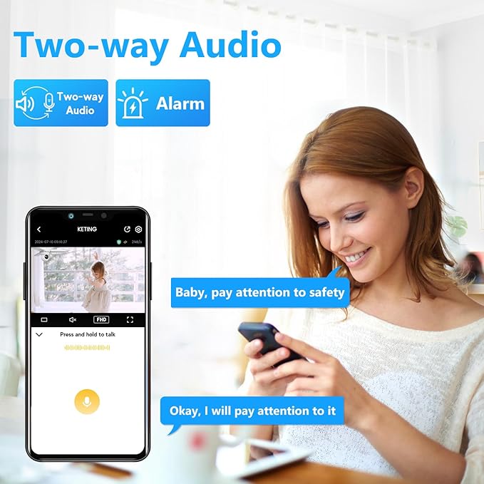 - 【Precise Motion Alarm & Two-Way Audio】Once detects an intruder, the camera will record a video and send you even an instant alert notification. At the same time spotlights and siren will be activated to warn unwelcome intruders. You can customize motion areas and privacy areas to focus only on what you want to focus on. You can also talk with visitors via two-way audio.