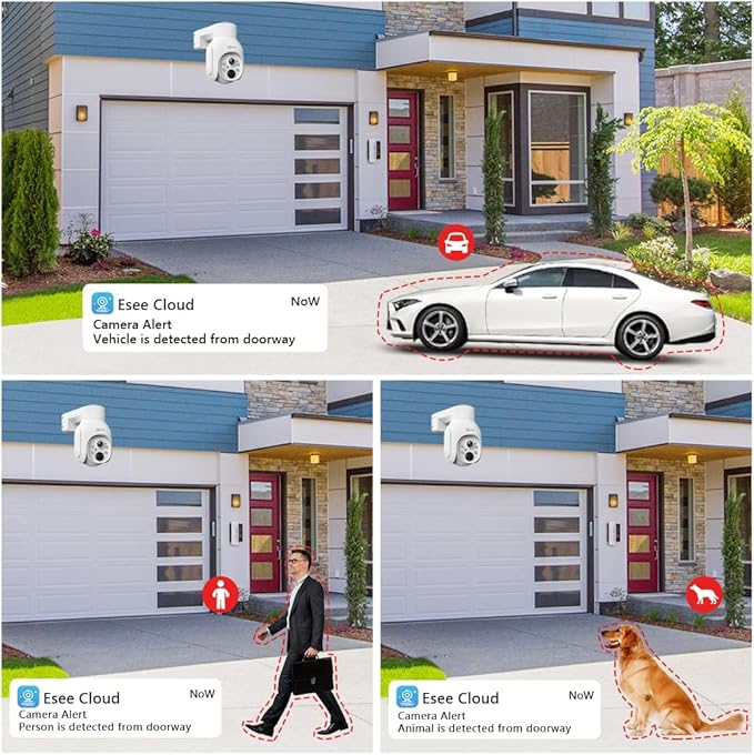 - 【4MP PTZ 360° Coverage】The outdoor wireless security cameras captures every detail with a remarkable 2.5K resolution, capture clearer images and video than 1296P and 1080P. Equipped with 2 spotlights and IR lights, it provides full-color night vision even at night and monitor distance up to 65 feet. PTZ camera outdoor can 355°pan rotation, 90°tilt rotation, 130°ultra-wide viewing angle and 8x zoom, all-around and blind areas to monitor your property, give you peace of mind.