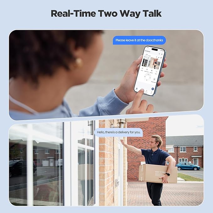 - 【Alarm Light & Sound】You can set the wireless camera outdoor to emit a harsh alarm sound to drive away intruders or unwanted small animals. The outdoor camera wireless can automatically emit a sound when triggering a motion alarm. You can also say what you want by manually pressing the microphone icon in the app. While letting the camera automatically sound an alarm, please be aware if it will affect your neighbors. Your home security system.